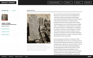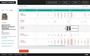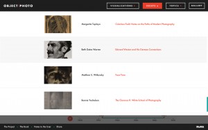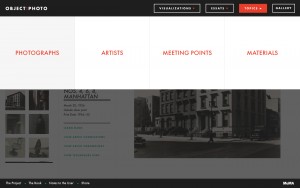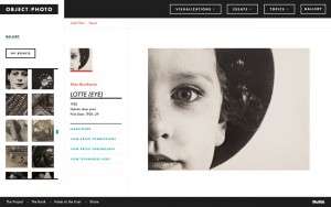 In 2001, the Museum of Modern Art acquired more than 300 iconic photographs from Thomas Walther’s private collection. Spanning the first half of the 20th century, these works represent a period of unprecedented photographic creativity as new techniques and technologies became widely available. Object:Photo brings these photographs and the research of MoMA’s curatorial team to life in the form of four visualizations that allow users to explore both the collection and the artists represented in a variety of contexts.
